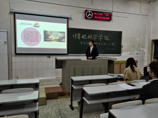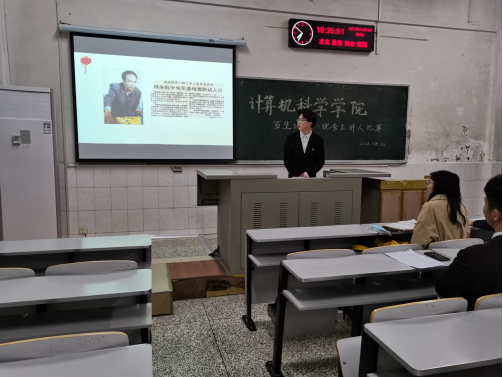 (通讯员 周可心 张茜)为学习贯彻落实习近平新时代中国特色社会主义思想,2021年4月23日晚19:00,计算机科学学院在五教101教室举行了2021年“百生讲坛”院级优秀主讲人比赛。辅导员张颖旭、张茜老师出席了本次活动,比赛由信安32001班李志文主持。