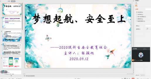 为切实做好常态化疫情防控下的2020年秋季新生开学教育工作,进一步加深新生对开学前工作的准备,全面了解学校和学院的整体防控工作,2020年9月12日中午12:00计算机科学学院利用腾讯会议(分两个会场)给2020级本科生召开了以“梦想起航,安全至上”为主题的安全教育大会。会议由学院20级新生辅导员张颖旭主持,参加此次会议的有兼职辅导员谭京红和全体20级本科生。