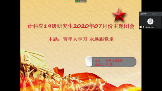 为引领带动广大团员青年认真学习习近平新时代中国特色社会主义思想,贯彻落实团中央深入推进“青年大学习”行动工作部署。计算机科学学院在7月以团支部为单位召开了“青年大学习,永远跟党走”为主题的团会活动,活动时间为6月30号到7月5号。