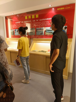 在讲解员引导下,同学们走上二楼,满怀崇高敬意,仔细聆听了陈及时、何东旭、方招等18名学生结成“人链”勇救落水儿童的英雄事迹,深切领悟“人链”精神内涵,许多同学在看到三位烈士的遗物时,都不禁潸然泪下。