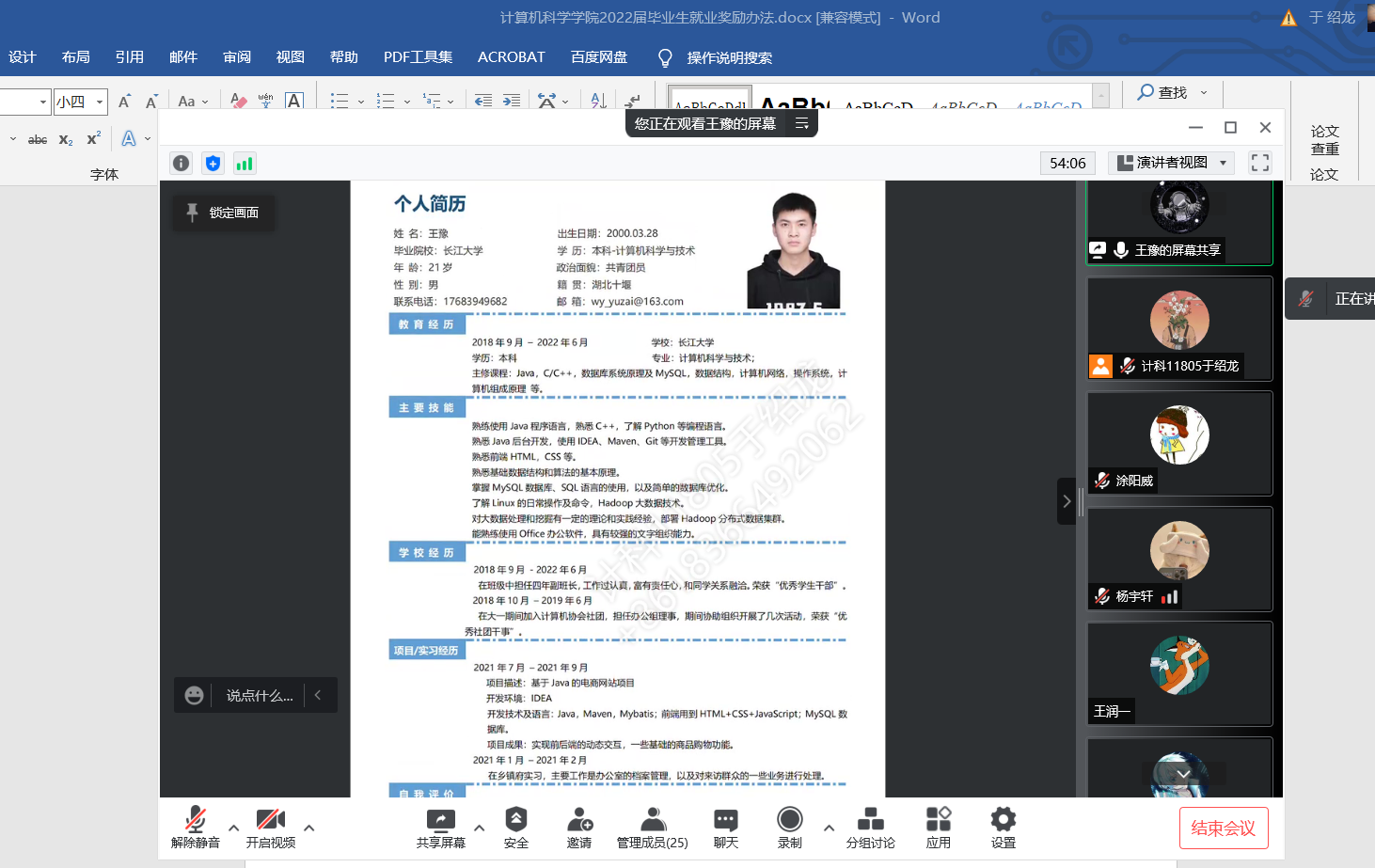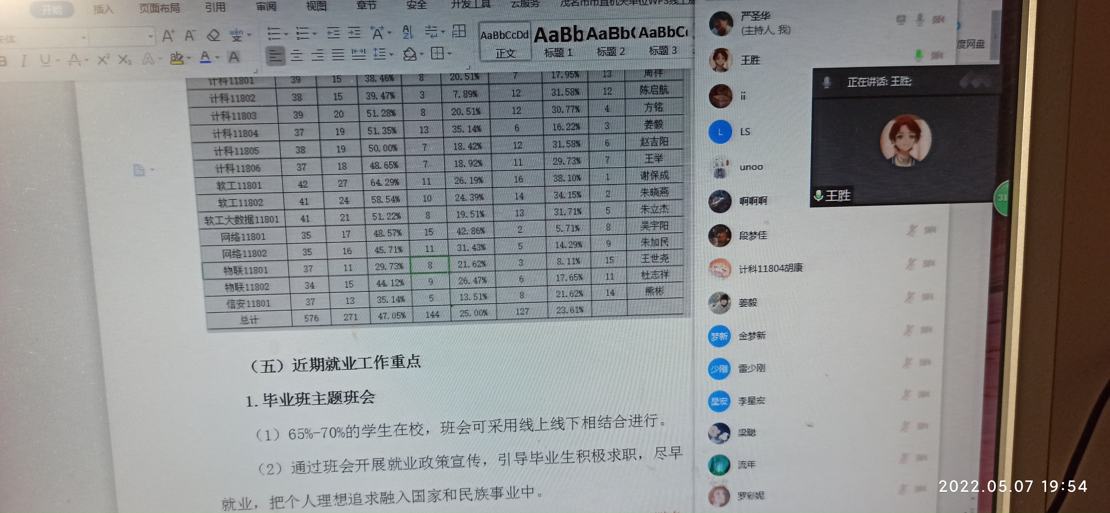 (通讯员 余珺瑞)为促进球王会体育平台网页2022届毕业生就业、升学、离校等工作顺利进行,充分帮助同学们顺利毕业,5月7日—5月14日,计算机科学学院采取线上、线下相结合的方式开展2022届毕业生年级主题班会。会议由党委副书记颜学俊牵头,各班班主任主持,计算机科学学院2022届毕业生全体参会。