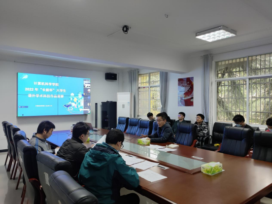 为深入学习贯彻习近平新时代中国特色社会主义思想,贯彻落实国家创新创业工作部署,推进学校“双一流”建设,引导学生培养科学精神和科学态度,根据学校相关要求,计算机科学学院于11月28日下午2点在4教307举办2022 年“长新杯”大学生课外学术科技作品竞赛院赛,学院雷鸣老师、向华老师、邱林老师担任本次比赛评委。