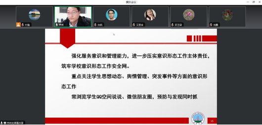 本次工作会议肖彬副书记主要从“日常管理及安全稳定、心理健康教育工作、就业工作、学业情况、意识形态工作”等五个方面对班主任老师提出了工作要求,通过结合球王会体育平台网页学生工作的特点和具体事例,为球王会体育平台网页学生定制了一套全面的关心方案和安全防护措施。