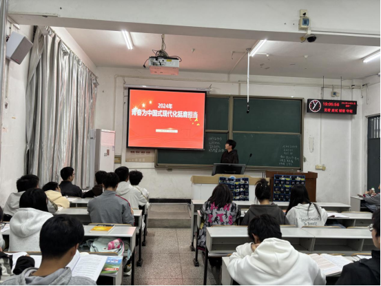 为深入学习贯彻党的二十届三中全会精神,以全会精神赋能基层团支部的中心任务,围绕党和国家重大战略,结合重要时间节点,分领域组织化开展主题团日,动员引领广大团员争当“五个模范”、做到“五个带头”,在强国建设、民族复兴伟业中勇当先锋队、突击队,为实现高质量发展持续注入青春力量。经研究决定在全院范围内开展10月份主题教育实践活动。同时为庆祝新中国成立75周年暨纪念“10·24”全国见义勇为舍己救人大学生英雄集体诞生十五周年,增强青年学生社会责任感和历史使命感。计算机科学学院在10月以团支部为单位召开了以此为主题的团会活动,本月示范团支部为计科32403班,团会主题为“青春为中国式现代化挺膺担当”。主讲人为该班团支书周明力同学,计科32403班全体同学参加。