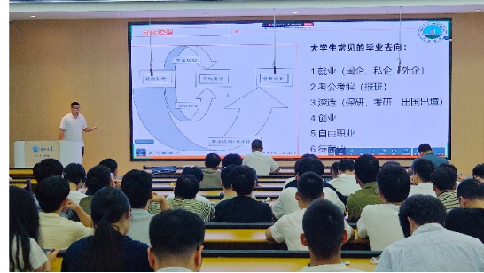 就业规划指导环节,余珺瑞老师结合近三年学院研究生就业数据与典型案例,全面分析了当前就业市场趋势及不同发展路径的适配方向。他从“就业、考编、深造、创业”四大维度展开:针对就业群体,解读国企、私企、外企的招聘偏好与能力要求;针对考公考编群体,分享备考时间规划、报班选择及岗位报考技巧;针对深造群体,梳理保研申请流程、考研复习策略及出国出境申请要点;同时也为有创业想法或选择自由职业的同学提供政策咨询建议。他特别提醒同学们,需尽早开展自我评估,明确职业定位,充分利用学校就业指导中心、导师资源及企业实习机会,提前储备职业竞争力。