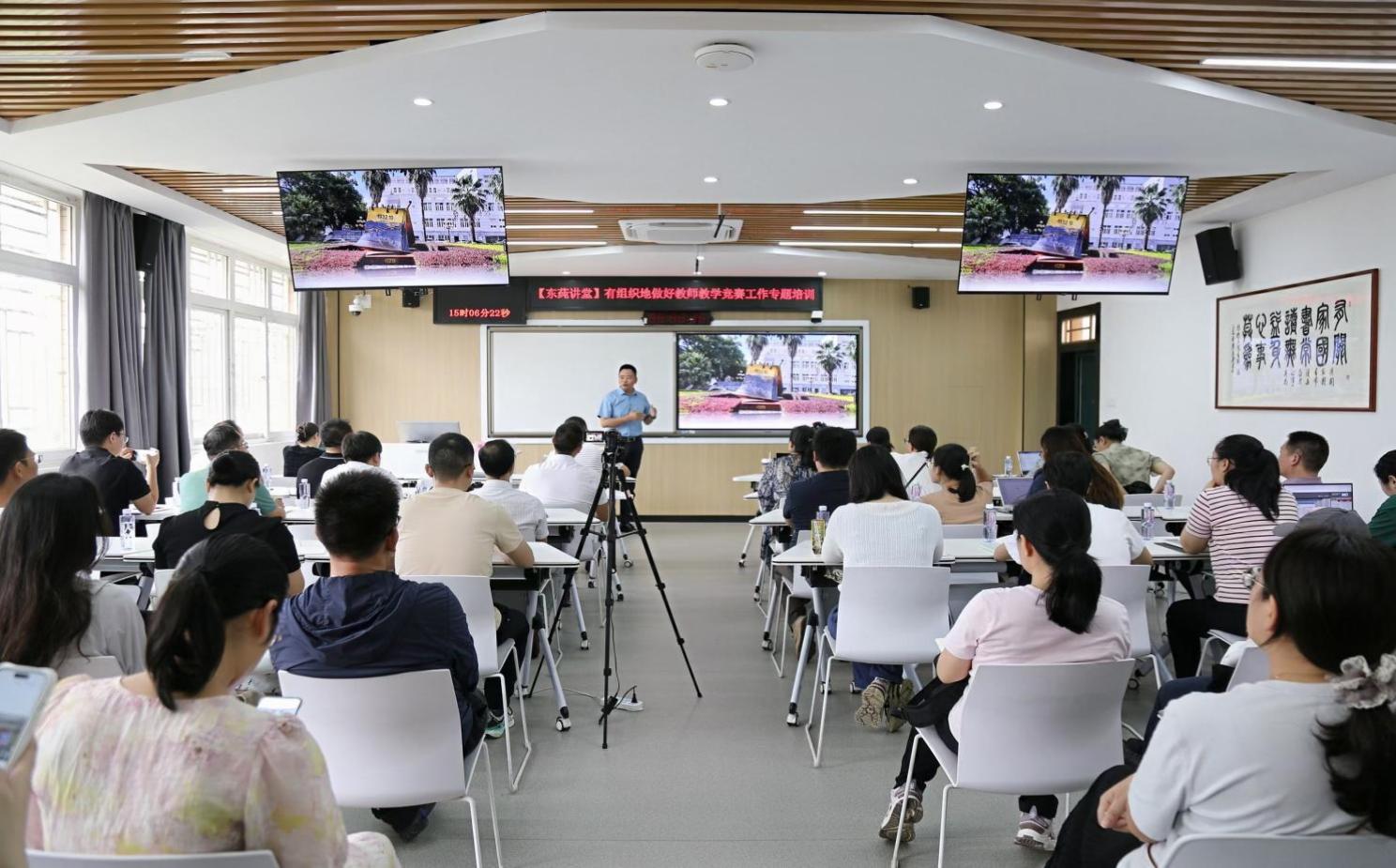 当日下午,应广西师范大学邀请,郑健以“有组织地做好教师教学竞赛工作”在该校“东莼讲堂”开展专题培训。培训中,郑健以“赛事备赛组织者+经验总结者”的双重视角,系统分享了球王会体育平台网页教师教学竞赛的工作思路与具体举措。培训现场互动频繁,参训教师围绕“竞赛选题技巧”“教学方案设计优化”“课堂展示细节把控”等问题积极提问,郑健逐一耐心解答,培训反响热烈,获得参训教师一致认可。