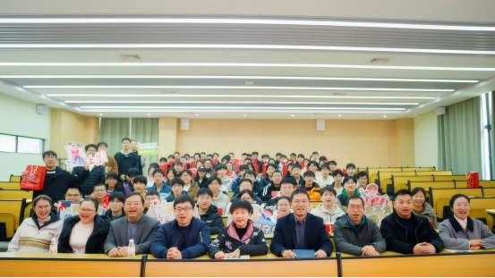 讲话结束后,崔院长为考研代表发放了精心准备的考研礼包,礼包内包含文具、水杯等实用物品,承载着学院对学子们的美好祝福。随后,班主任们也为现场学子逐一发放礼包,师生合影留念,定格下这温暖而励志的瞬间。