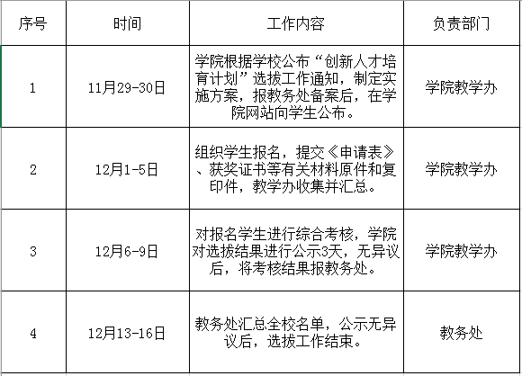 (一)制订学院选拔实施细则,报教务处备案后向学生公布;